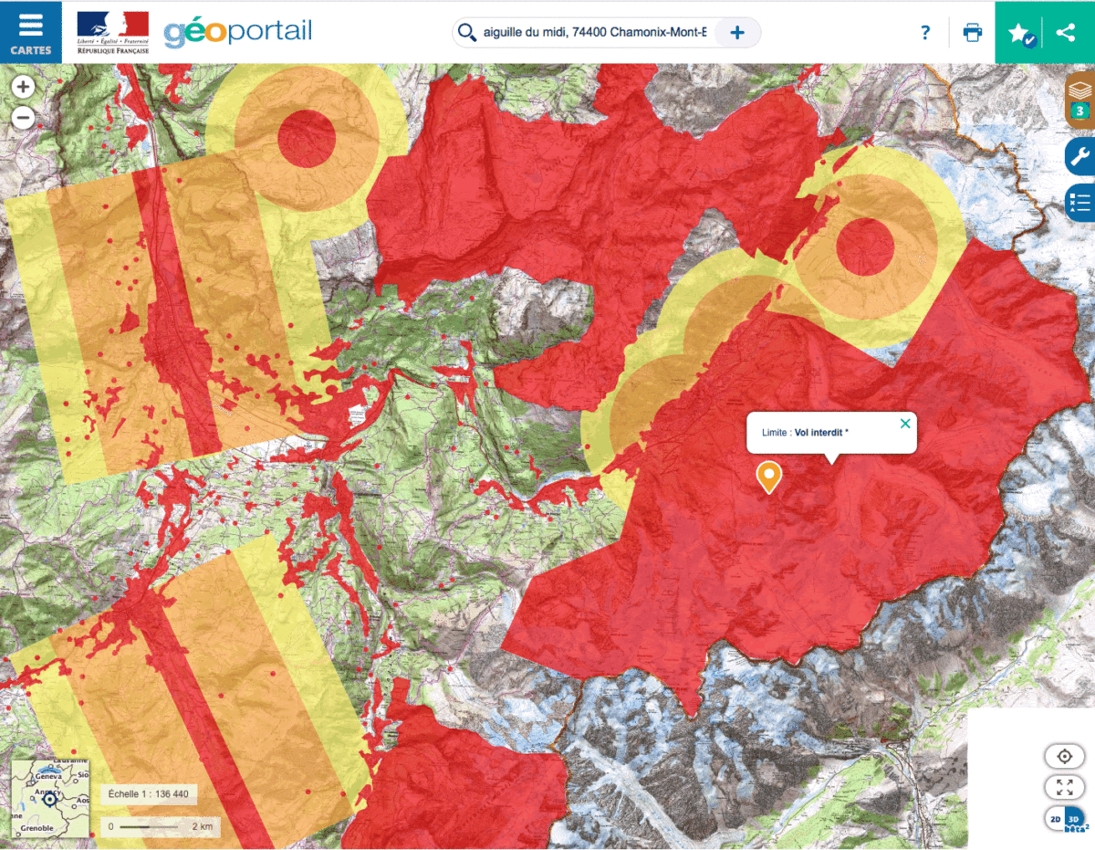 Pour savoir où il est possible de voler en drone, vous pouvez également consulter gratuitement les deux outils suivants, en fonction du massif ou lieu où vous allez pratiquer, en recoupant leurs informations: